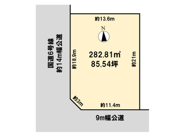 商業地域内 牛久駅徒歩3分 国道6号線沿いの南西角地 上下水道都市ガス宅地内引込済みです。