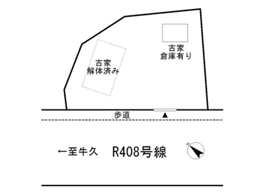 国道408号線沿 317坪の広々とした敷地 多目的に使用可能。 ※線引き前宅地につき専用住宅が建築できる可能性があります